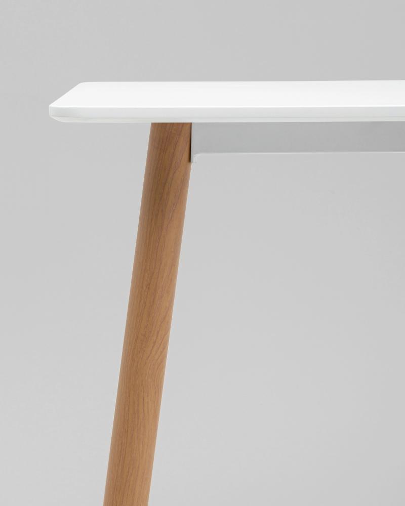 Стол изготовлен из высококачественного материала с прямоугольной столешницей белого цвета из МДФ.