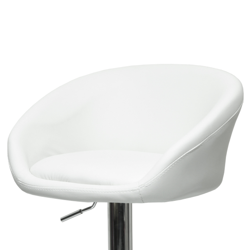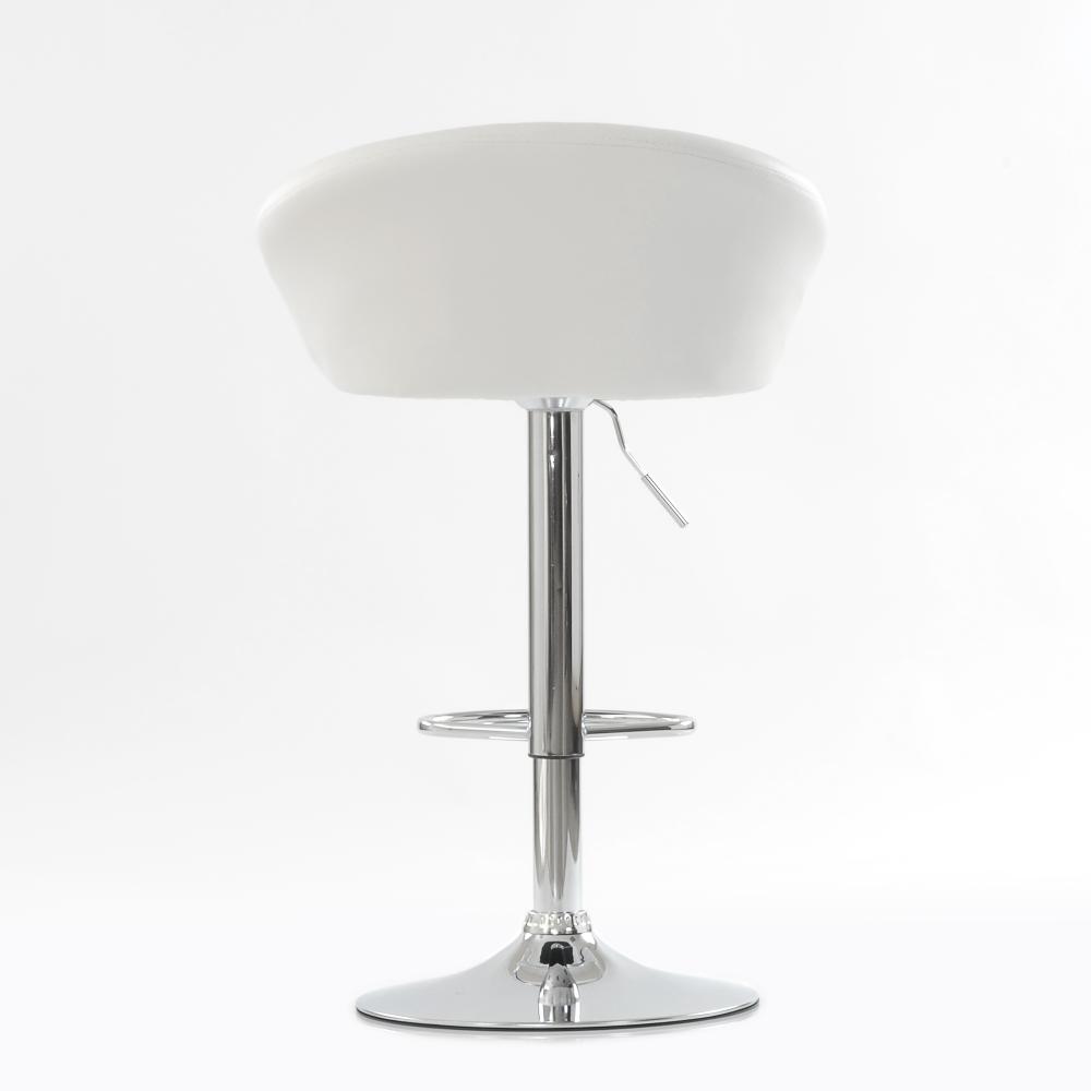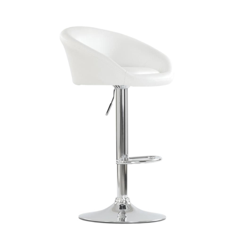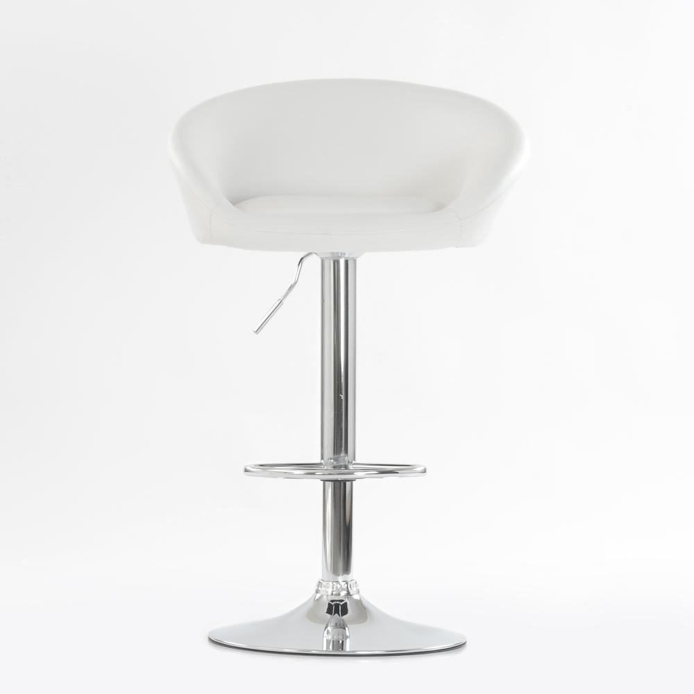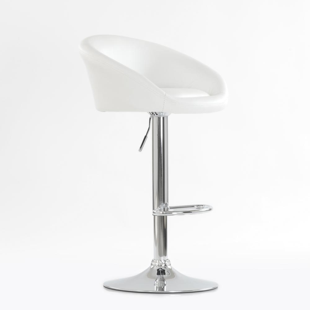 Удобный мягкий барный стул без подлокотников. Металлические элементы покрыты блестящим хромом.