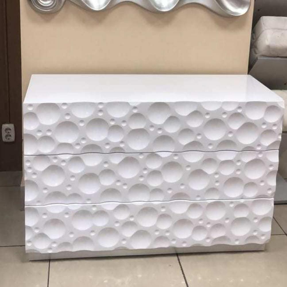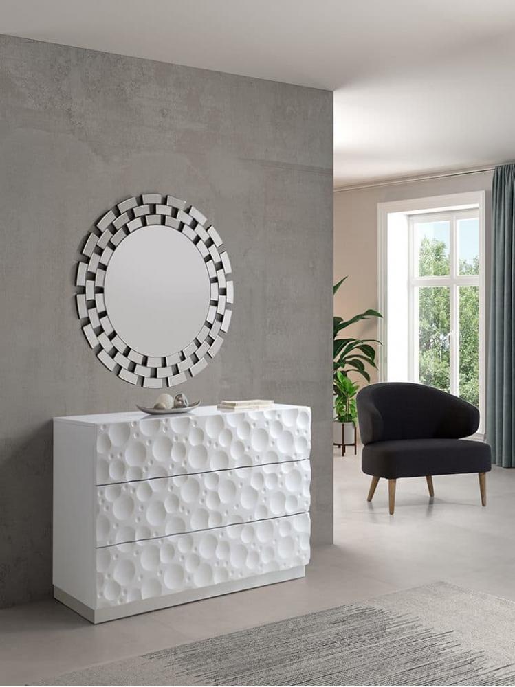 Конструкция установлена на тонкие, но прочные металлические ножки, которые обеспечивают визуальную легкость и позволяют легко поддерживать чистоту в помещении. Внутреннее пространство комода организовано через систему вместительных ящиков с доводчиками, гарантирующими плавное и бесшумное закрывание. Сочетание светлых оттенков и золотистых или хромированных деталей делает модель Luna идеальным выбором для спален и гостиных в стиле неоклассика, ар-деко или мягкий минимализм, подчеркивая безупречный вкус владельца.