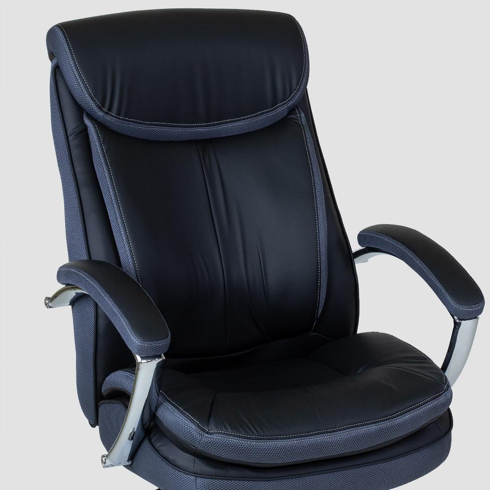 Солидное кресло руководителя Toto King Size XXL в элегантной черной экокоже. Модель увеличенного формата создана для максимального комфорта во время длительной работы. Удобное сиденье сочетает перфорированную искусственную кожу для улучшенной циркуляции воздуха и практичные сетчатые торцы. Кресло оснащено регулировкой высоты сиденья и механизмом качания TopGun с фиксацией для возможности кратковременного отдыха. Прочная хромированная крестовина гарантирует устойчивость и долговечность конструкции. Идеальное решение для кабинета руководителя, сочетающее комфорт, функциональность и солидный внешний вид.