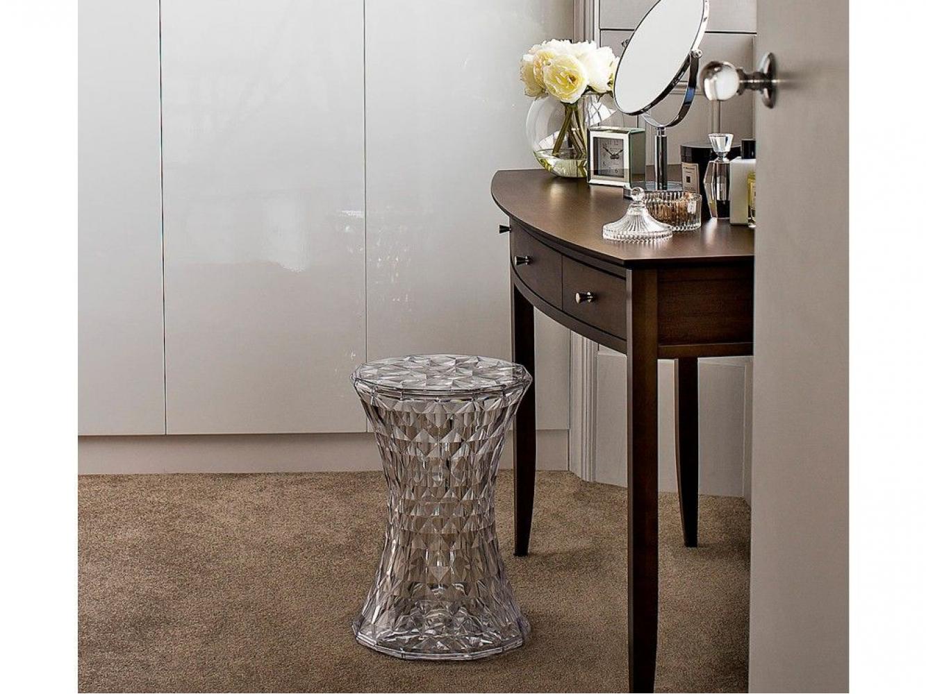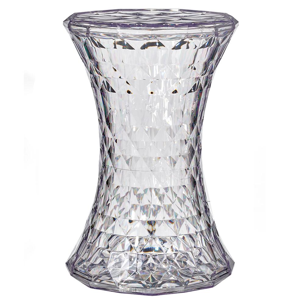 "Стул-пуф Stone. Простая и симметричная форма напоминающая песочные часы, а поверхность состоящая из множества граней, отражающих свет, необычна и оригинальна. Уникальность изделия - это высокая функциональность, позволяющая использовать его в абсолютно любых жилых и общественных пространствах. Стул выполнен из цельнолитого прозрачного поликарбоната в разнообразной цветовой гамме."