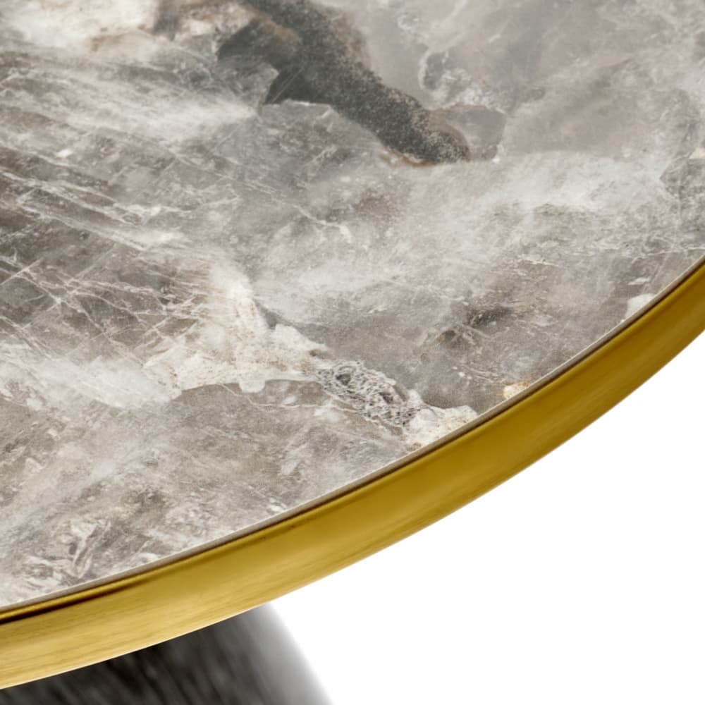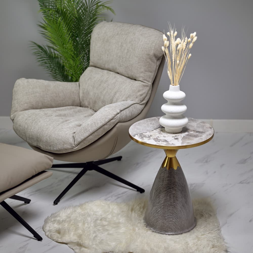 Журнальный столик Secret представляет собой воплощение изысканности и функционального искусства, способное стать центральным декоративным акцентом в любом современном пространстве. Этот предмет мебели приковывает взгляды благодаря своей уникальной геометрии и премиальным материалам, среди которых выделяется основание из высококлассного керамогранита с выразительной текстурой мрамора и стройная металлическая опора. Особое благородство и легкий винтажный налет модели придает тонкое золотистое обрамление по контуру основания, подчеркивающее элитарный статус изделия. Благодаря своей компактности, круглой форме и визуальной легкости, столик Secret демонстрирует исключительную универсальность: он может служить не только местом для отдыха в гостиной, но и выступать в роли элегантной прикроватной тумбы или мобильной подставки для декора в любой части дома. Надежность конструкции и долговечность материалов гарантируют, что этот столик будет радовать вас долгие годы, гармонично дополняя как уютные камерные комнаты, так и открытые просторные интерьеры, наполняя их атмосферой роскоши и стиля.